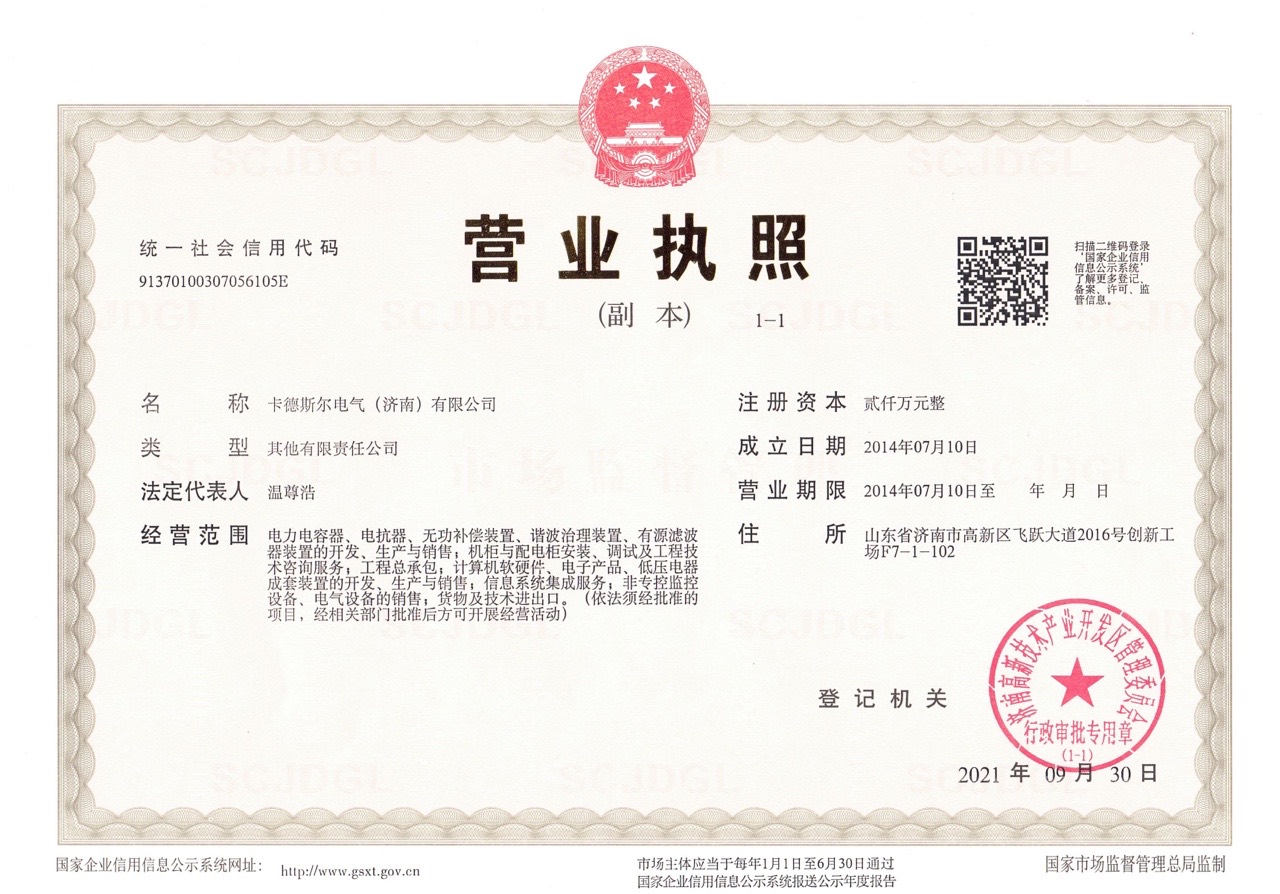 卡德斯爾電氣(濟南)有限公司 是在電力系統能效優化、電能質量產品領域的一個中型國際企業,自成立以來超過80年的應用經驗。